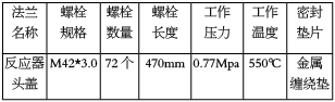 反应器头盖设备情况如下: