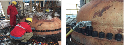 本次安装的紧固方法采用凯特克四同步的“拉伸达载荷”预紧力控制技术进行同步紧固。